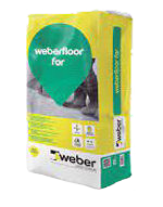 Mortero autonivelante de cemento Weberfloor For "WEBER", CT - C30 - F7 - RWA10 según UNE-EN 13813, color gris, compuesto por ligantes hidráulicos, resinas poliméricas, áridos silíceos y aditivos orgánicos e inorgánicos, para aplicar con llana.